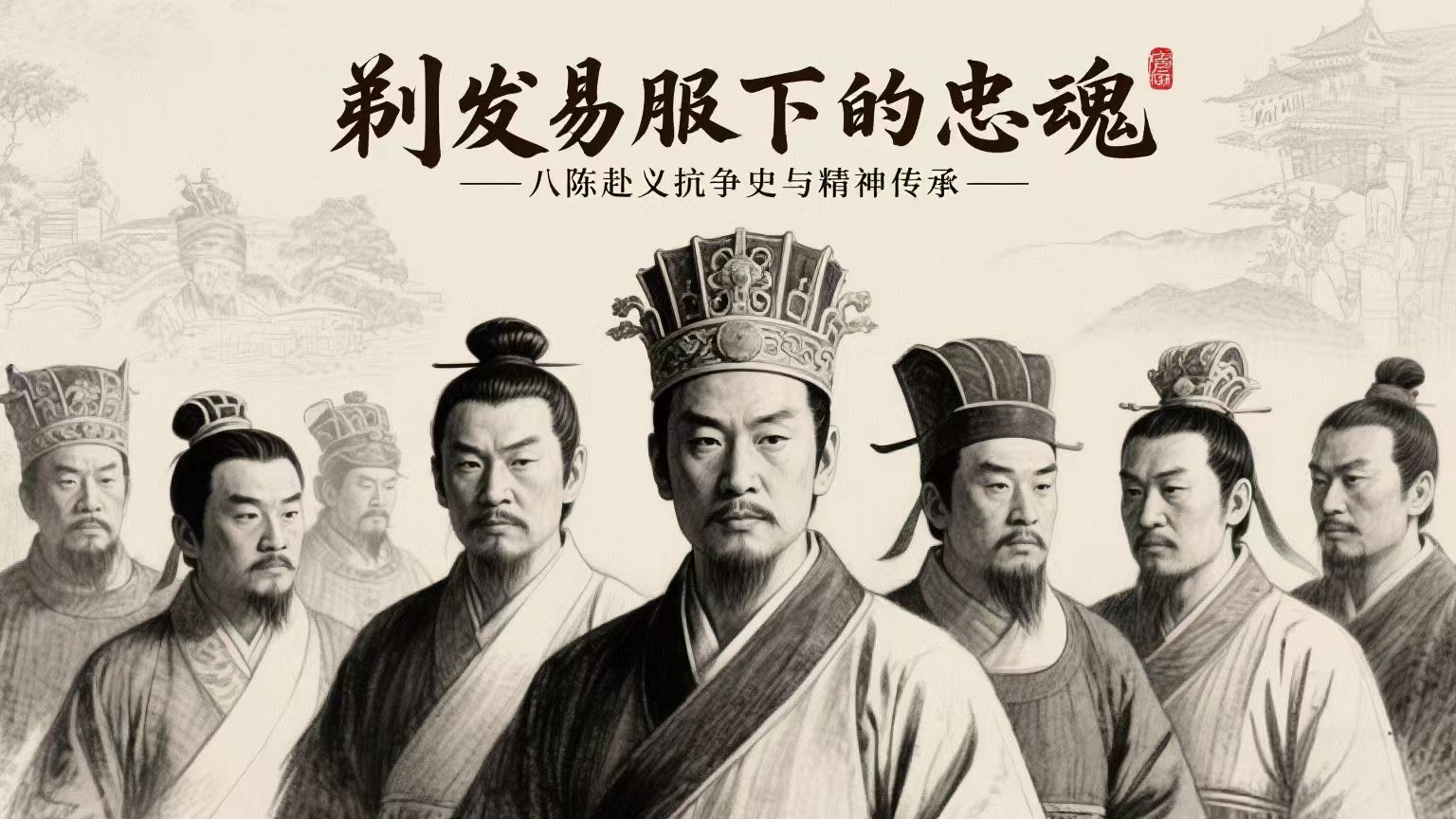 1645年,清军入关后,顺治帝颁布剃发令,强制汉族男子剃发留辫、改易满服。这一命令如巨石投湖,激起明清易代之际民族矛盾与文化冲突的千层浪,也催生出"八陈赴义"等可歌可泣的抗争史诗。作为中华传统文化中"身体发肤,受之父母"伦理的践行者,八陈义士以"留发"为民族气节的象征,在剃发令的文化殖民高压下,书写了身体抗争与精神坚守的历史篇章。